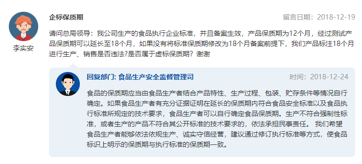 请问总局领导:我公司生产的食品执行企业标准,并且备案生效,产品保质期为12个月,经过测试产品保质期可以延长至18个月,如果没有将标准保质期修改为18个月备案前提下,我们产品标注18个月进行生产、销售是否违法?是否属于虚标保质期?谢谢