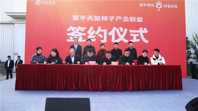 活动现场,天玺农业与华润超市、叮咚买菜、鲜丰水果、百果园、胖东来超市、诚信志远果业等全国TOP渠道商达成深度合作,进一步拓展高端市场,实现富平柿饼优质优价的价值转化。与此同时,天玺农业副总经理梁治国带领联盟成员共同宣读《富平天玺柿子产业联盟倡议书》,呼吁全行业加强自律规范,推动标准化建设,形成协同发展的良性生态。