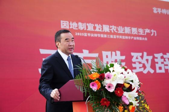 金秋十月,柿果飘香。10月26日上午,“因地制宜发展农业新质生产力 2025富平尖柿节暨第三届富平天玺柿子产业联盟大会”在天玺柿子小镇盛大开幕。富平县政协主席王永丽,县委常委宣传部部长詹辉,县人大副主任张三放,副县长段冰,县政协党组成员祁娟,县农业农村局、薛镇、到贤镇党委政府相关负责同志;来自中国柿子、苹果及猕猴桃领域一流科学家,中国园艺学会柿分会荣誉理事长、华中农业大学教授罗正荣,中国农业大学园艺学院教授王忆,西北农林科技大学园艺学院副院长关长飞、食品科学与工程学院副教授刘斌,西北农大研究员、陕西省现代猕猴桃产业技术体系首席科学家刘占德,西北农大博士、眉县猕猴桃试验站育种专家刘艳飞,富平县果业发展中心正高级工程师、“富平柿饼制作技艺”代表性传承人冯锁牢;陕西省农副食品商会常务副会长齐培培,中国果品流通协会副会长、大方集团天玺农业董事长王方胜,总裁任月莉,来自全国各地的柿子产业专家、经销商代表以及富平天玺柿子产业联盟成员等200余人出席本次活动,共话中国柿子产业现代化发展之路。