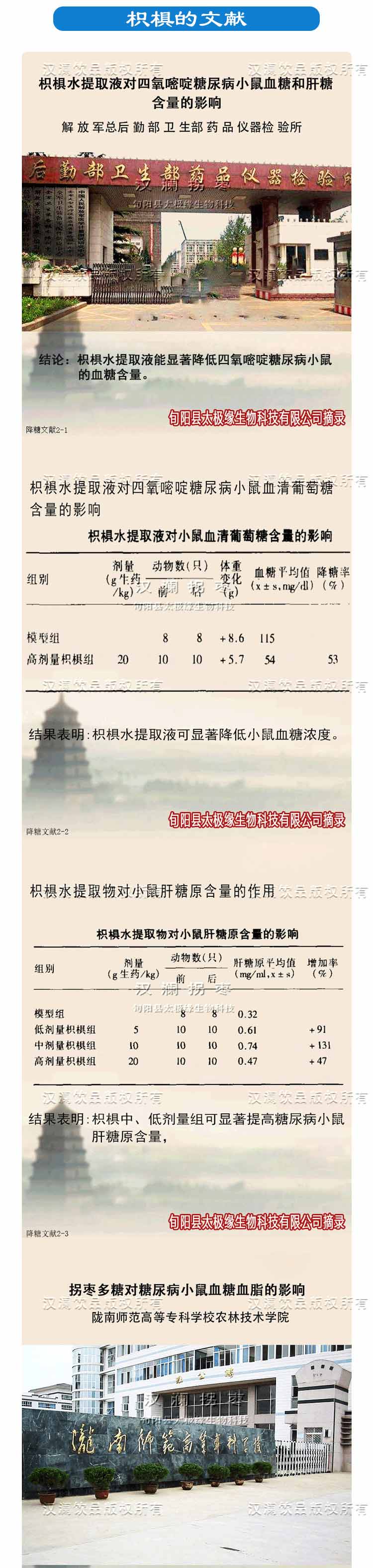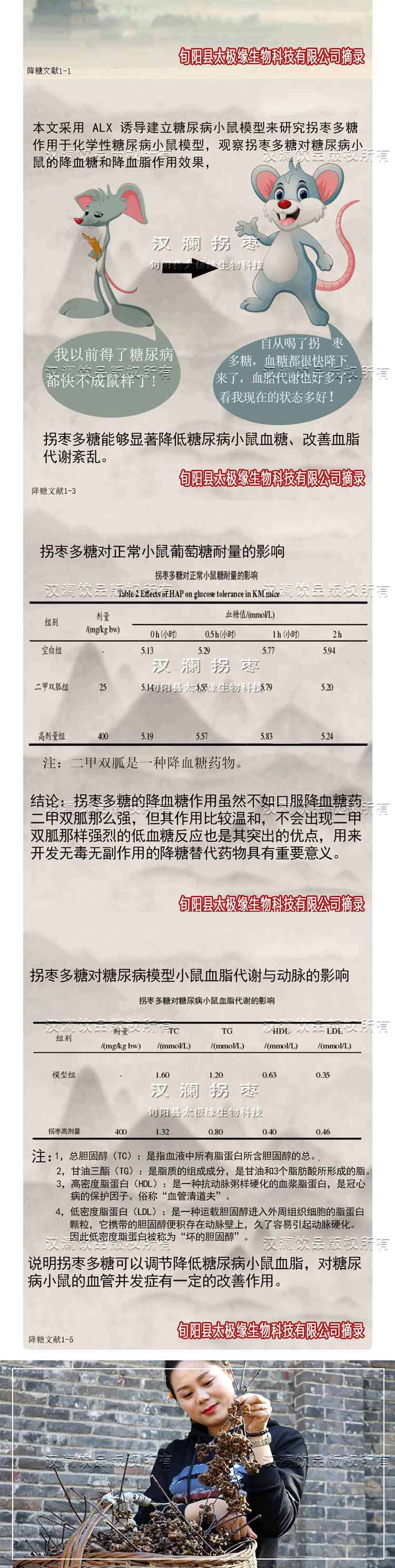 根据“863”计划项目——《拐枣多糖对于糖尿病血糖血脂的影响》实验研究表明,高剂量拐枣多糖治疗降糖效果显著。并作用效果与二甲双胍(胰腺激素及其血糖药)接近。旬阳枳椇汁中“硒”的含量是国际下限标准的3倍,缺硒可引起一些胰岛细胞合成及分泌胰岛素功能的原发性损害,补硒可保护胰岛,糖尿病并发症在体内的病理反应是广泛糖基化作用和氧化损伤,抑制氧化和非酶糖化可以减轻或延缓糖尿病的并发症,而硒对其有明显抑制作用。拐枣还含有麦草碱,B-咔啉,枳椇甙、鼠李碱等成分,具有抗脂质过氧化和降低血糖、血脂的功能。据新华社北京2016年11月14日电,我国糖尿病患者总人数达1亿且不断快速增长,致病危险因素广泛流行,但居民糖尿病知晓率、治疗率、控制率低……拐枣产品不但市场巨大还是一个造福人类的产品,前景广阔。
