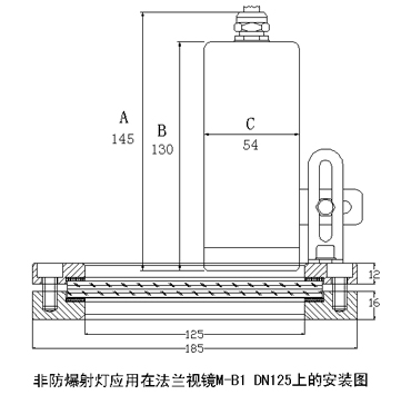 1、灯具安装时,只需在视镜盖板上钻攻丝2个安装螺孔,即可固定灯具。安装孔尺寸为M6螺