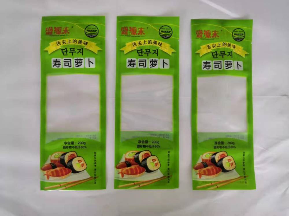 可彩印各种图案,免费提供设计,外形美观、使用方便,可增加方便手提扣及各种精美挂孔,特别适合于杂粮、香肠、蛋品、茶类干果类、烧烤食品、宠物食品、休闲零食等一系列产品的真空包装。
