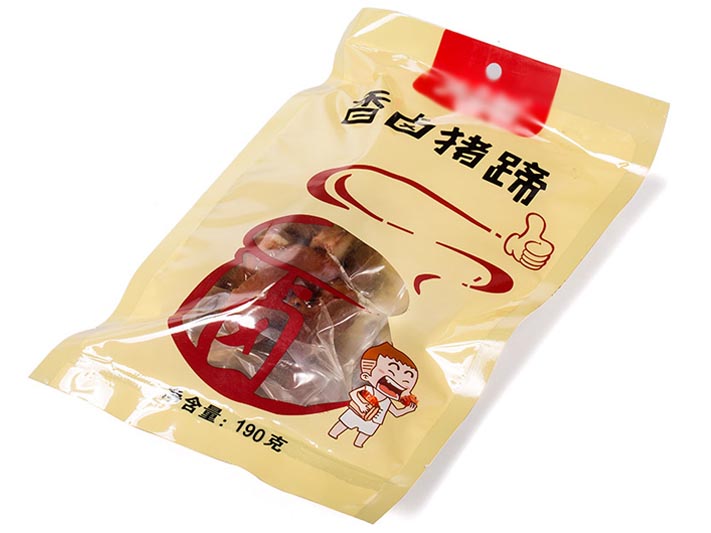 蒸煮袋外观平整良好,无折皱、气泡和附着物。材质:PA: 物料性能 坚韧,耐磨,耐水,抗酶菌,而且耐油性、耐低温冲击性、耐穿透性好。CPP:拥有良好的清晰度和光洁度,水气和异味阻隔性优良,可作为复合材料基膜。蒸煮袋有二层复合结构PA/CPP和三层复合结构PET/AP/CPP的透明袋,也可加上纯铝箔组成三层PET/AL/CPP和四层PET/AL/PA/CPP的不透明铝箔袋,作为食品和商品包装及外包装,具有印刷图案精美,密封性好、不起泡、防渗漏、防潮、隔氧、抗撕裂、抗穿刺 、抗挤压性能,我公司拥有先进的检测设备,和完善的监测体系,保证产品质量颜色。蒸煮袋适用范围:卤肉制品、海产品、水产品制品、腊味、烤鸭、烧鸡、烤猪、罐头制品、火腿、腌肉制品、香肠、熟肉制品、酱菜、粽子、板栗、即食玉米、豆制品等的保香、保质、保味、保色。
