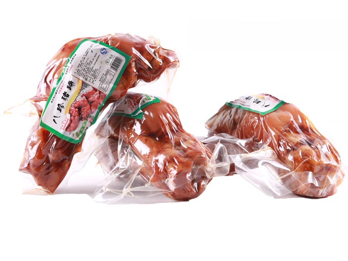 蒸煮袋外观平整良好,无折皱、气泡和附着物。材质:PA: 物料性能 坚韧,耐磨,耐水,抗酶菌,而且耐油性、耐低温冲击性、耐穿透性好。CPP:拥有良好的清晰度和光洁度,水气和异味阻隔性优良,可作为复合材料基膜。蒸煮袋有二层复合结构PA/CPP和三层复合结构PET/AP/CPP的透明袋,也可加上纯铝箔组成三层PET/AL/CPP和四层PET/AL/PA/CPP的不透明铝箔袋,作为食品和商品包装及外包装,具有印刷图案精美,密封性好、不起泡、防渗漏、防潮、隔氧、抗撕裂、抗穿刺 、抗挤压性能,我公司拥有先进的检测设备,和完善的监测体系,保证产品质量颜色。蒸煮袋适用范围:卤肉制品、海产品、水产品制品、腊味、烤鸭、烧鸡、烤猪、罐头制品、火腿、腌肉制品、香肠、熟肉制品、酱菜、粽子、板栗、即食玉米、豆制品等的保香、保质、保味、保色。