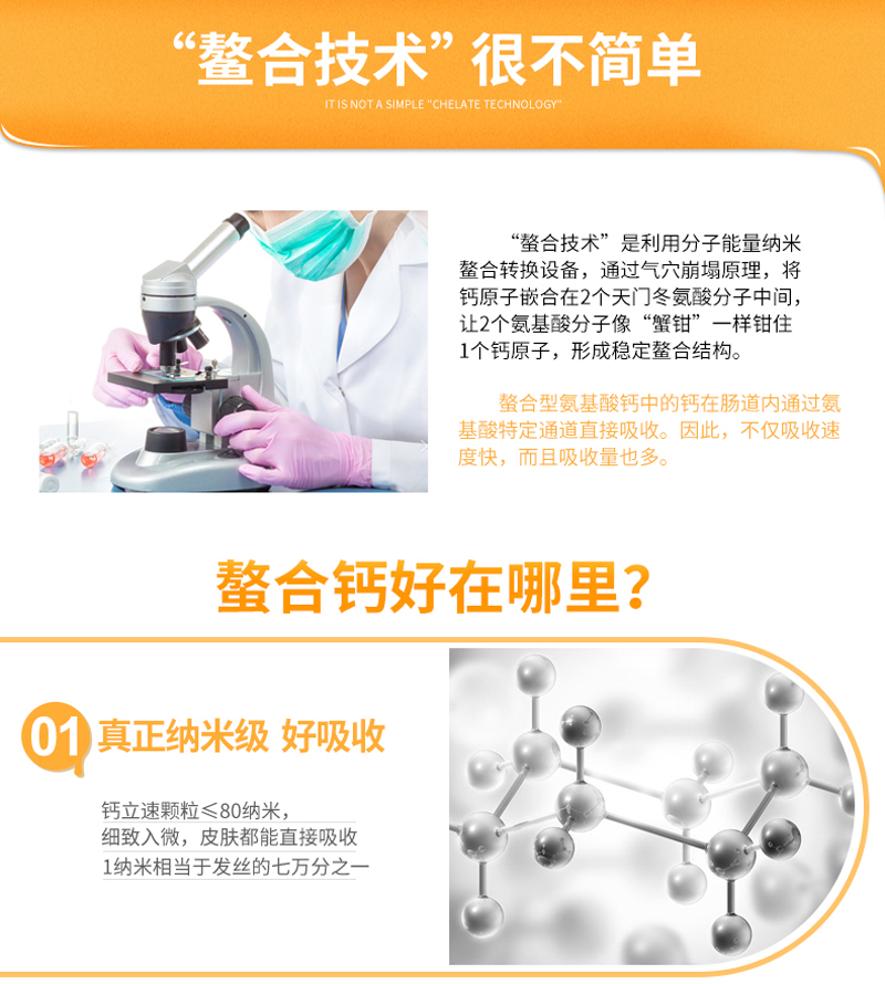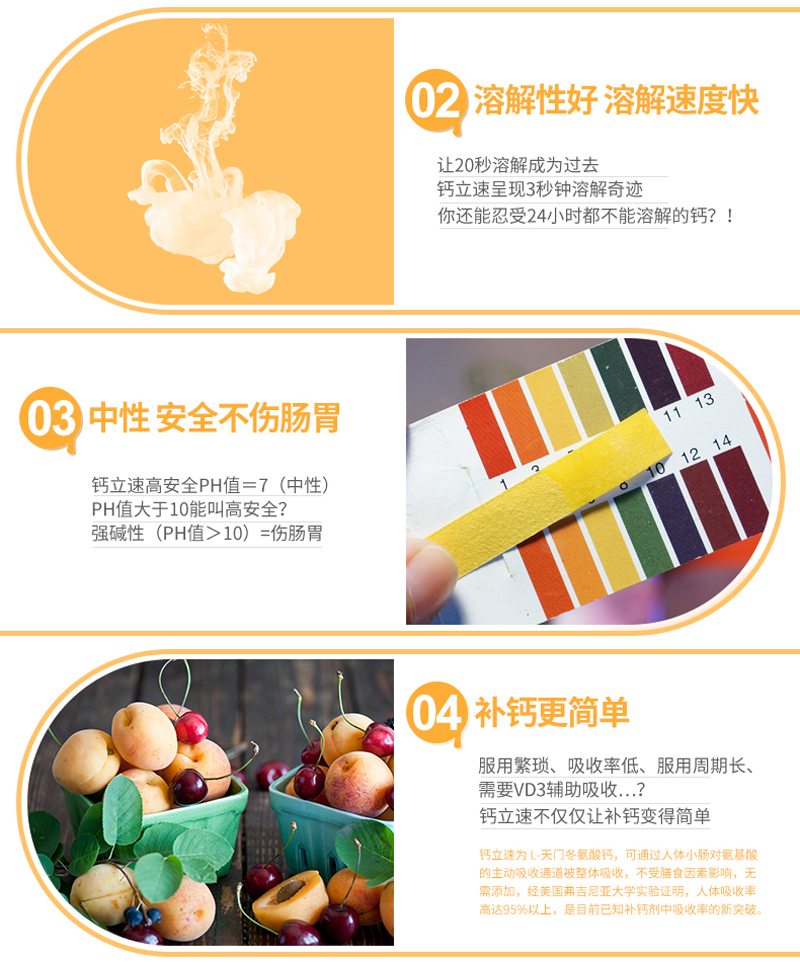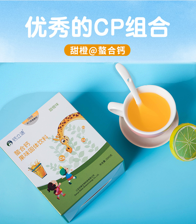 钙立速儿童螯合钙是全新一代钙产品,无需维生素D3的辅助吸收,吸收率是传统碳酸钙的3倍以上,无需胃酸水解,不嗳气不便秘,温和不伤肠胃。