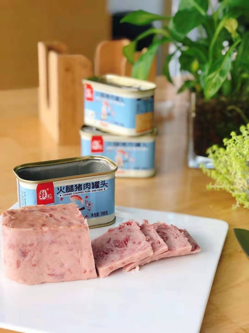 含肉量和淀粉含量不同,火腿猪肉含肉量在90%左右,淀粉含量不超过3%。吃火锅不点午餐肉真的很难做朋友。作为肉食的金牌替身,午餐肉能随时给人带来一种平价的身心满足体验和快乐。尤其稍稍加热一下,味道能提升到另一个档次。它烹饪简单,随便煎一煎,甚至直接切片拌沙拉就可以食用。