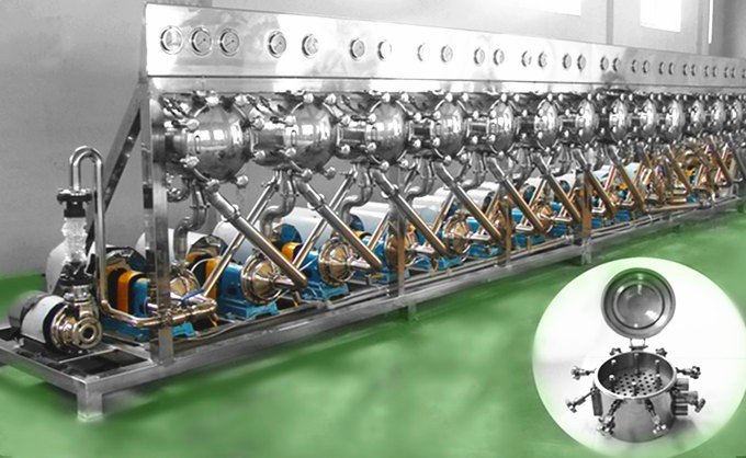 离心筛是锉磨除砂后的薯类、小麦淀粉浆料通过进料结构均匀进入筛篮底部,筛篮由动力传动部分带动做高速旋转。淀粉浆料通过粉料机构进入筛面,在重力及离心力的作用下,浆料沿着筛面做圆周运动并同时向筛篮边沿移动。在洗水系统的喷淋下,移动过程中细小的淀粉颗粒透过筛网排出,由筛下消沫泵排出,较大的淀粉颗粒不能透过筛网排出,逐渐下沉落入渣仓并由排渣泵排走。薯渣及淀粉浆料在向筛篮边缘移动的过程中不断受冲洗水冲洗,除去渣浆中吸附的游离淀粉。另外,在筛面背部的反冲管作用下,可去除筛面吸附的细渣,有效的避免筛面的堵塞,保证设备的正常运转。