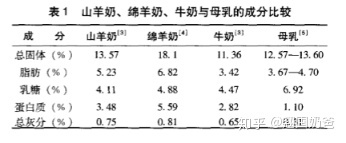 查了不少文献,终于找到了比较直观的羊奶、牛奶、母乳的营养成分对比。