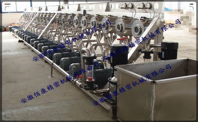 5.浓缩精制:经过筛分的淀粉乳中,除含淀粉外,还含有蛋白质、细渣、色素和灰分等,这些物质的颗粒虽然很小,但比得不同,它们在悬浮液中的沉降速度也不同,采用我公司新型旋流器进行脱汁,浓缩,洗涤,即得优质的淀粉乳。