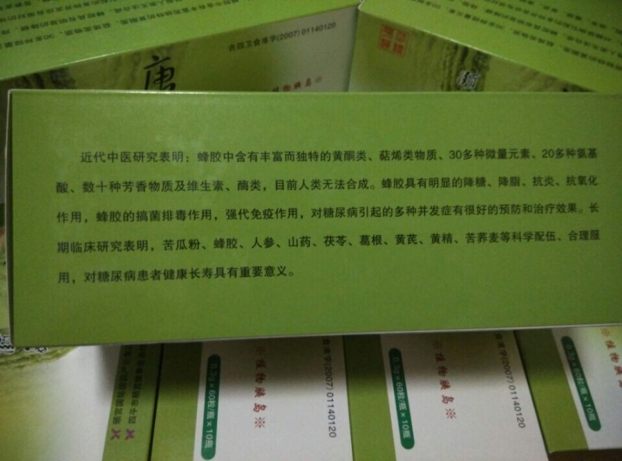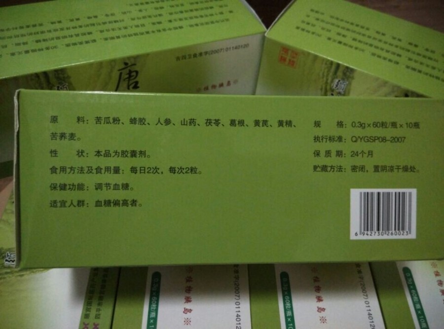 主要原料 | 苦瓜粉、蜂胶、人参、山药、茯苓、葛根、黄芪、黄精、苦荞麦 |