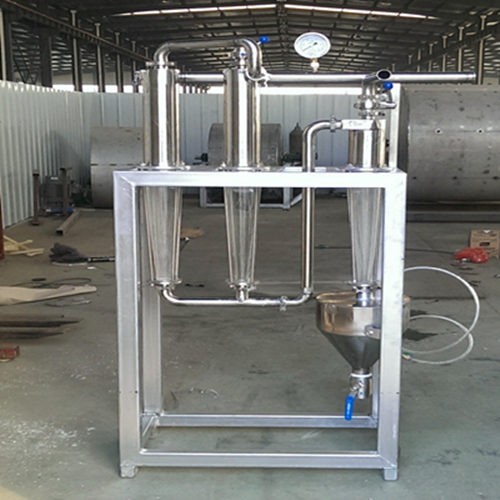 一种淀粉乳除砂器,多个一级除砂器均由上部diyi圆筒体和下部透明diyi圆锥筒体构成,diyi圆筒体的外侧壁上设有进料口,diyi圆筒体的顶端连接出料管,各个diyi圆筒体上的出料管与主出料管相连通,diyi圆锥筒体的底端连接在一级回流管上;二级除砂器由上部第二圆筒体和下部第二圆锥筒体构成,第二圆筒体外侧壁连接一级回流管,第二圆筒体顶端设有二次回流口,二次回流管同二次回流口相连,第二圆锥筒体底端与集砂器相连。本实用新型采用透明一级除砂器的圆锥筒体,通过观察细砂沿一级除砂器的圆锥筒体内壁螺旋下降到一次回流管时是否夹杂淀粉乳来开启二次除砂器,达到了节省了生产成本,提高了工作效率。