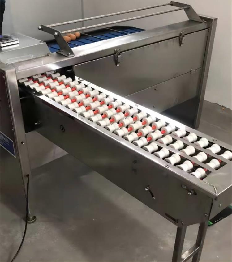 本机结构材质;配件为模具化生产的工程塑料件;蛋品分级机适用于鸡蛋、鸭蛋、皮蛋、多种蛋等蛋品的重量分级。该设备是利用天平原理将蛋品按重量分成所需要的等级, 可分五个级别,每个级别随意调控。