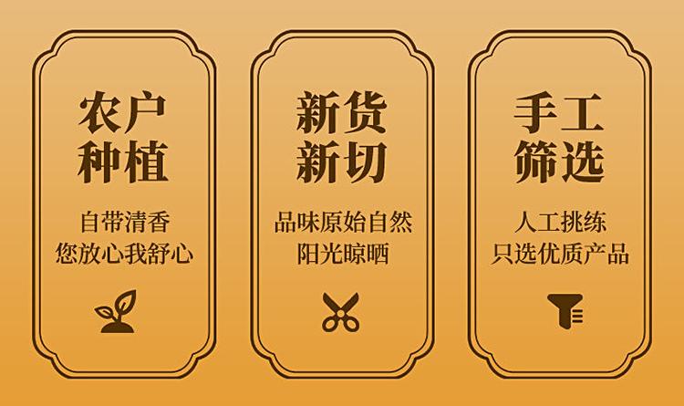 3、优质原料:原产地直接采购、不用边角料、反复筛选、多次去杂、天然无硫、品质优异;
