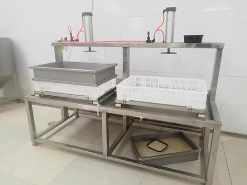 、由于豆腐生产车间水量较大,在安装豆皮机时,要在总电源上安装漏电保护器,安装机组时也要在每个机组上安装地线,起到安全保护的作用。