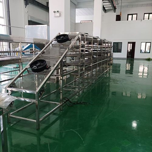 食品摊凉线有效去除物料表面水滴,大大缩短了贴标、装箱的准备工作,适宜流水线作业,提高企业自动化程度,吹干风温为常温,有效保护物料本身的色泽和品质。