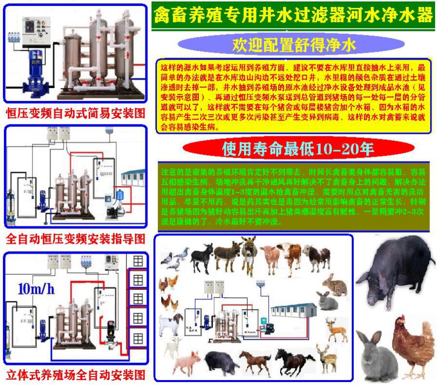 请记住舒得品牌舒得全国好像就一家专业研究井水河水深度处理设备、用舒得高标准满意99.9、舒得产品价格不高您用得起次投入用20年不是问题、舒得牌禽畜养殖水处理设备畜牧养殖水处理设备鸡场猪场水处理设备。