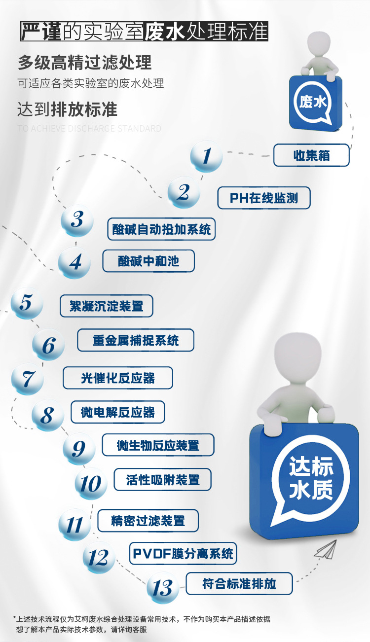 艾柯实验室深度型废水(污水)综合处理系统适用于各类实验室的玻璃器皿清洗废水(污水)、重度污染废水(污水)、医疗卫生废液的清理净化等。