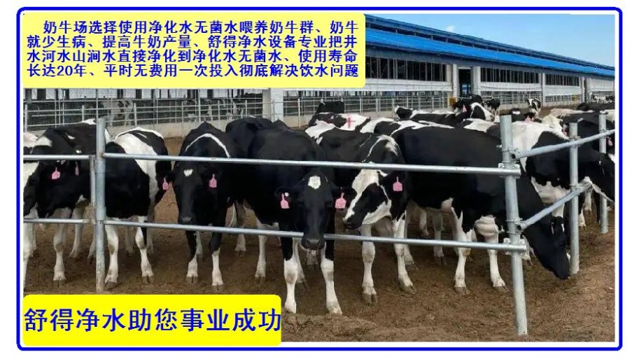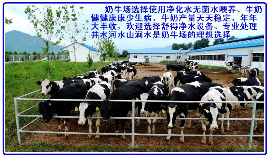 随着条件不断的在提高、全国很多养殖行业选择配置大型净水设备来净化河水井水,花了让养殖的奶牛肉牛喝的全是净化水无菌水,来减少奶牛肉牛的生病率增加免疫力增加抵抗力、这样奶牛身体健健康康提高产值、肉牛快速生长。