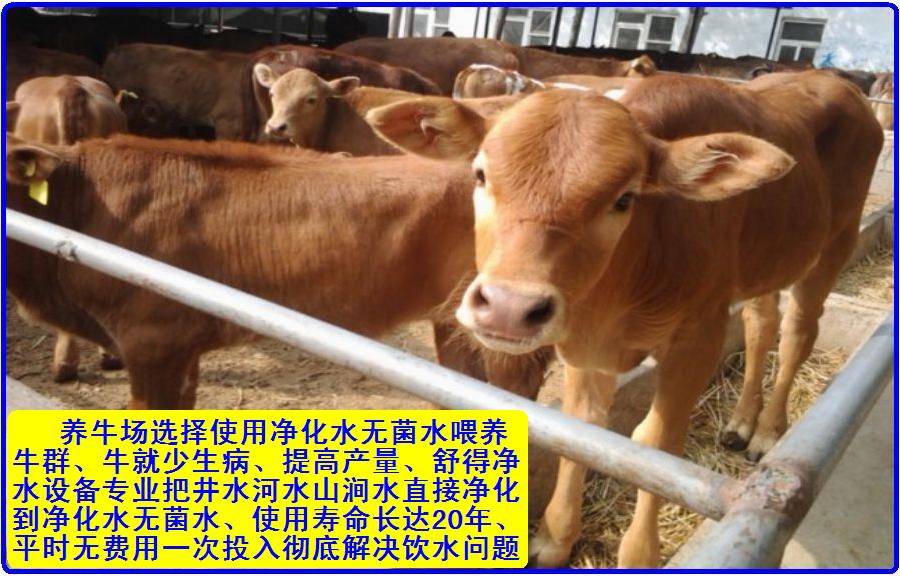 井水河水净化设备养牛场无菌水设备机械化养牛场奶牛场等养殖机械,注意的是密集的养殖环境肯定好不到那去、时间长牛的身体都容易脏、容易互相感染生病、场地冲洗再干净通风再好解决不了牛身上的问题,解决办法用超出牛身体温度1-3度的温水给牛冲澡、需要时用点对奶牛肉牛无害的洗洁用品、尽量不用药、说是药其实也是毒因为经常用影响牛的正常生长,特别是养牛场因为肉牛奶牛好动容易出汗再加上牛粪潮湿度高有腻性、一星期要冲1-2次澡是康健的了。