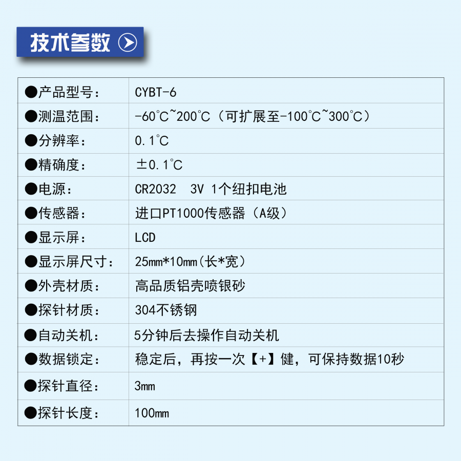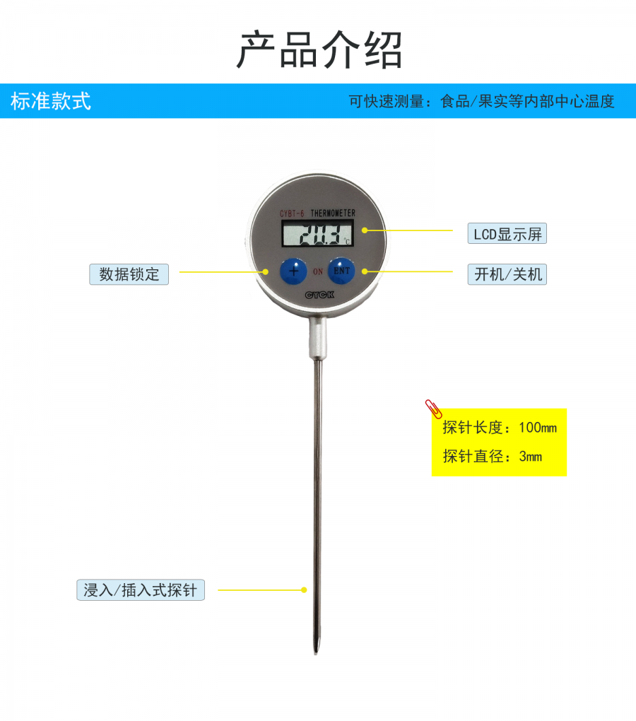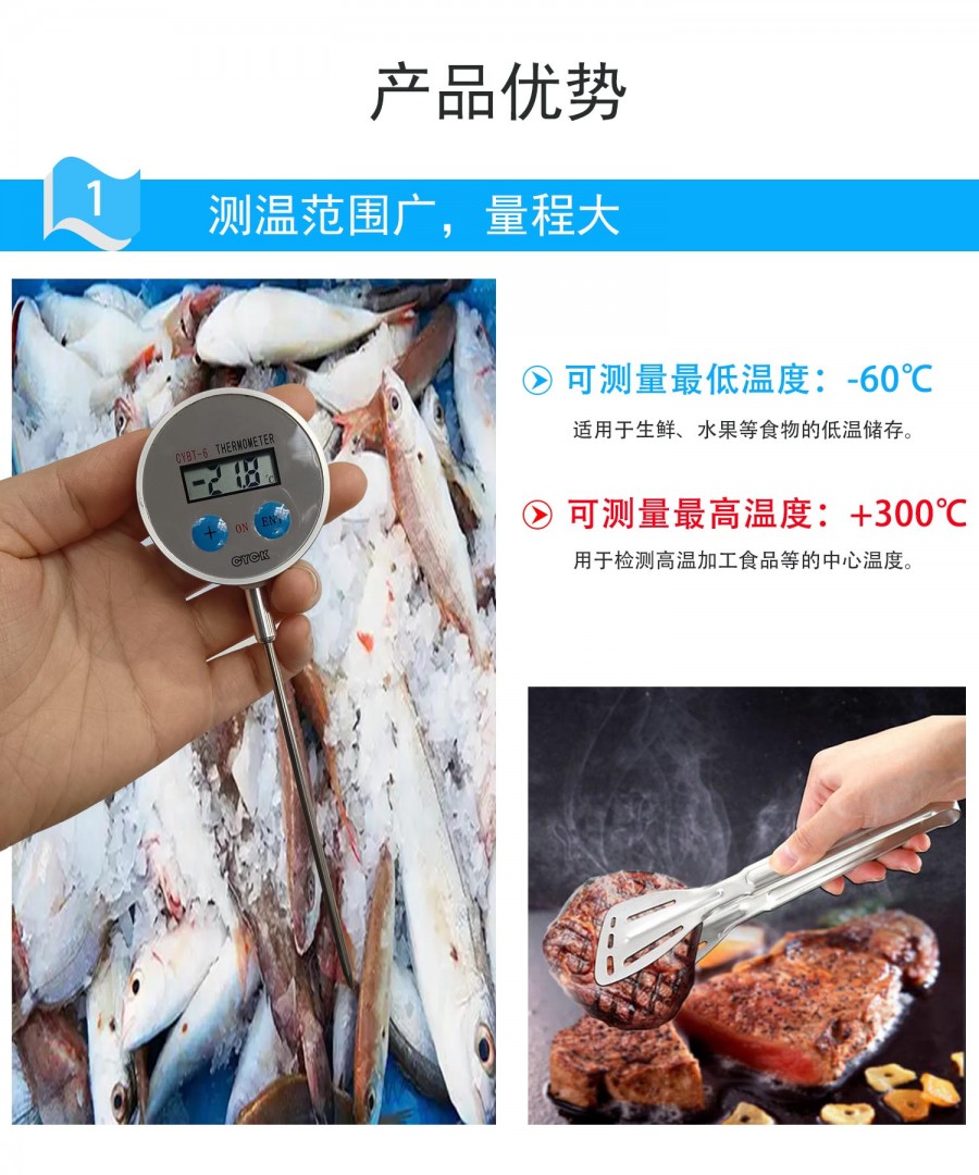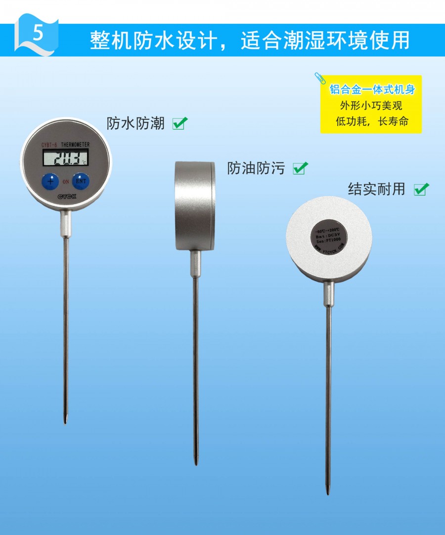 数字中心温度计 CYBT-6食品中心温度计 高精度±0.1℃ 不锈钢探针式 反应快 防水防潮 厂家定制