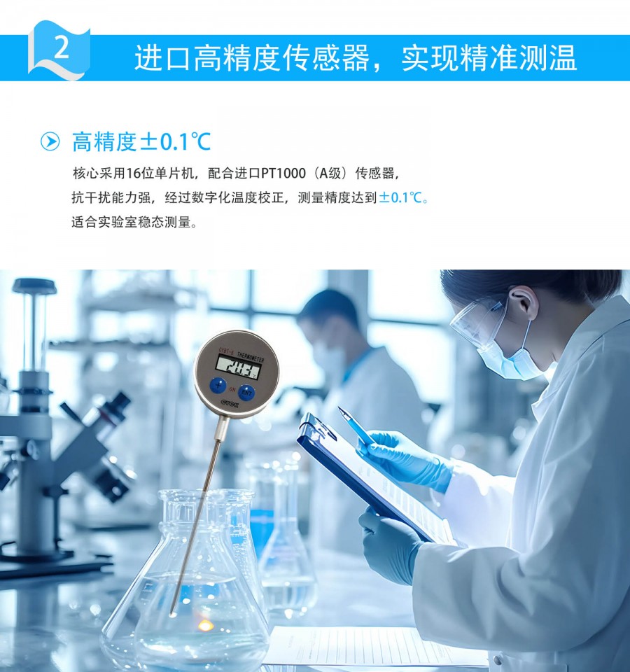 用于测量空气、液体、果实内部、食品内部温度,是一款便携式 手持式 探针式温度计,核心采用16位单片机,配合进口PT1000温度传感器,达到了很高的测量精度。采用不锈钢探针式封装,经过特殊工艺处理,反应速度快,便于使用。整机采用防水设计,适合潮湿环境使用。由于采用单片机,用户有特殊要求,可以定制。