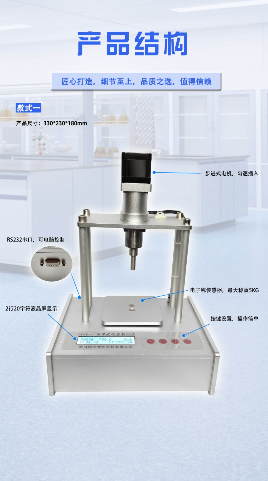 主要用于测量多种水果(苹果、猕猴桃、柑橘、蓝莓、梨)、各种馅料、固体原液酸奶等的硬度,以及各种食品(面包、面团、丸子等)的硬度,化妆品(乳液、面霜、香皂、日化品等)的硬度。创佳CYHD-1电子硬度计果实馅料食品月饼豆腐糕点化妆品面霜乳液香皂硬度测试与以往手持机械式硬度计相比,测量精度高,校准方便,保证测量结果的准确性。精确控制插入深度,减少人为因素的影响。采用RS232串口通信,可用电脑进行控制,可以将测量过程中的数据发回电脑,生成硬度—深度曲线。