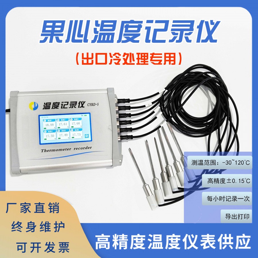 海关出口冷处理专用 温度记录设备 果心温度记录仪 探针式|精度±0.15℃|记录存储打印|符合海关要求