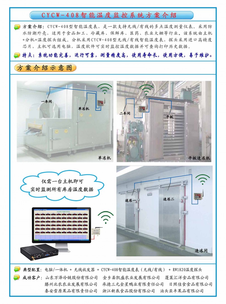 智能温度仪表CYCW-408保鲜速冻食品车间温度监控系统 高精多路采集 大棚温度智能化控制器 温湿度数据可对接至【河北省食品追溯平台】