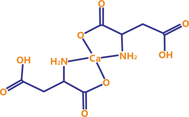 白色粉末,易吸湿。溶解度高,水溶液无色无味,呈中性,稳定性好。主要生理功能为补钙。据认为鳌合型氨基酸钙中的钙并不以通常钙盐的离子方式被吸收,而是作为整个分子的一部分(鳌合形式)进入肠绒毛细胞,进入细胞后由于pH值的改变或肽酶的作用而水解、部分水解或不水解,像一般肽那样随胞内流动液在主动运输条件下从细胞进入血液,并运送至全身。另据介绍,天冬氨酸钙曾经上海市卫生防疫站测定,其肠道吸收率高达90%。