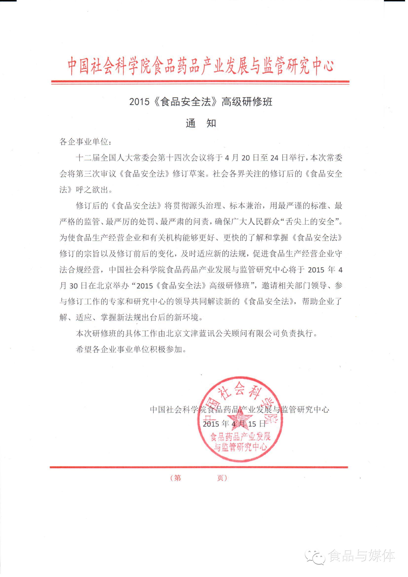 背 景:据确切消息,新《食品安全法》将于4月24日正式出台,为了让广大企业更好地适应新的政策环境,我中心特邀相关领导、专家为大家提早解读新的《食品安全法》。这将是新《食品安全法》颁布后第一家权威解读该法的高级研修班。