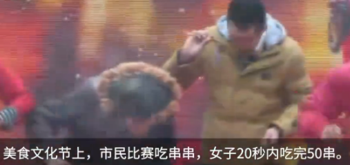 最近又有一则关于吃货的新闻火了:一名女子20秒火速吃掉了50根肉串,惊掉了所有人的下巴。