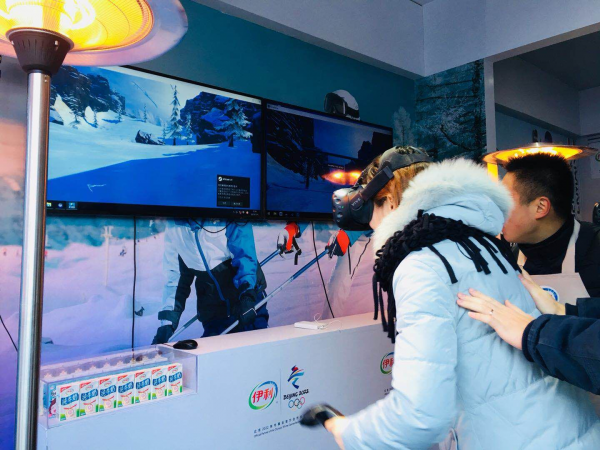 1月6日-7日冰雪节活动当天,伊利在现场进行了精心布置。精彩的雪地滑雪装备PK赛、别开生面的VR滑雪体验、独具一格的“雪球弹”打靶活动齐聚现场发力,将用户带入神奇的冰雪世界,并开启了冰雪节狂欢趴的序幕。