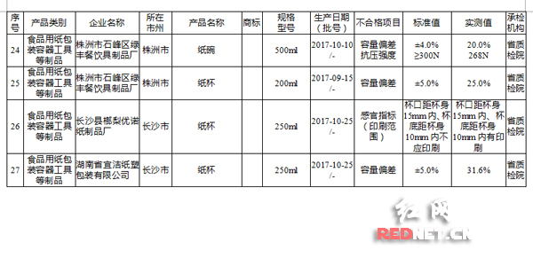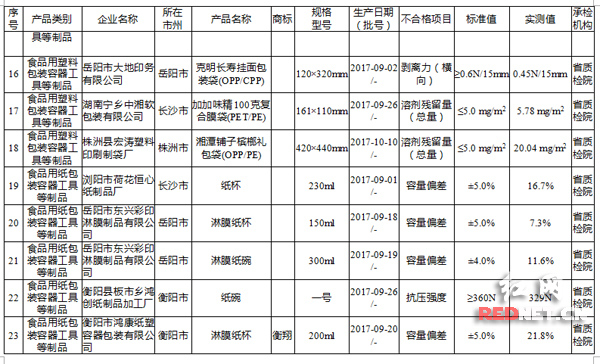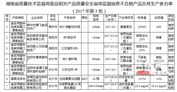 湖南省质量技术监督局食品相关产品质量安全省级监督抽查不合格产品及其生产者名单