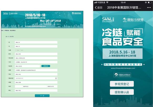 2018年5月16日-18日,由中物联冷链委与SIAL CHINA(中食展)主办的中食展国际冷链展展览会将于上海新国际博览中心盛大举行。中物联冷链委秉承为行业提供专业服务的原则,坚持致力为参展企业打造冷链全产业品牌商贸交流平台,并得到了行业内展商和专业观众的认可和支持。为了方便观众到场参观,提高参展效率,国际冷链馆将继续使用观众预登记系统,该系统已正式上线投入使用。
