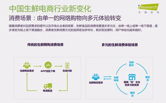 显然,随着消费者对品质需求的提升以及市场从业者的探索,生鲜类商品的消费场景正在由原先“需求—下单—支付—配送”的传统生鲜网购场景,向“生鲜电商+生鲜超市+餐饮+便利店”等围绕“吃”文化的多元体验场景转变。同时,这对供应链也提出了更高的要求,采购、冷链、仓储任一环节均会影响用户的最终体验。
