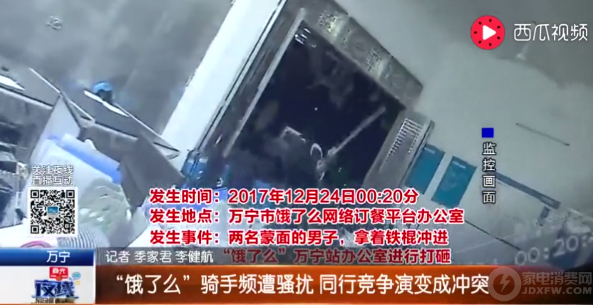 早在2017年12月24日的凌晨,就有两名蒙头蒙脸的人手持铁棍,进入饿了么平台办公室进行打砸,随后扬长而去。