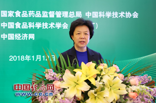图为中国工程院院士、大连工业大学国家海洋食品工程技术中心主任朱蓓薇在2017年食品安全热点科学解读媒体沟通会上发言。经济日报-中国经济网记者 韩肖/摄
