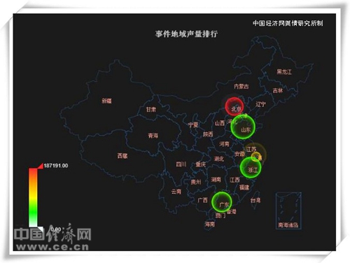 从时间地域声量排行图可以看出,北京、上海、广东等地区相关舆情热度较高。