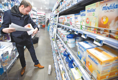 1月11日,在法国奥尔良,法国竞争、消费和反欺诈总局的工作人员在一家药房检查婴儿奶制品。
