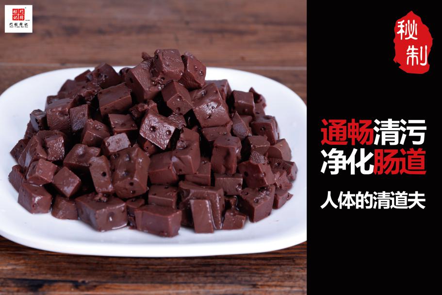 5.把鸭血,粉丝配菜煮熟之后铺入碗中