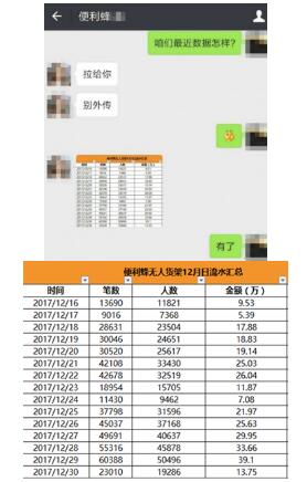 但是,一份被便利蜂的员工曝出的内部报表却显示,从12月16日到12月30日这半个月的时间中,便利蜂货架上产生的日订单数最高不过6万出点头,最低时甚至没有过万,日流水最低时只有5万多元。