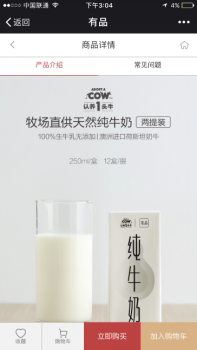 从新上线的这款“有品&认养一头牛”纯牛奶来看,小米应该是刚刚守住了底线。两箱24包牛奶,每包250ml,售价89元。这个价格并不劲爆,跟其他电商平台相比,小米的这款牛奶价格属于中位偏下一点,这也说明竞争激烈的乳品行业并未留给小米足够的空间来施展价格屠夫的武功。