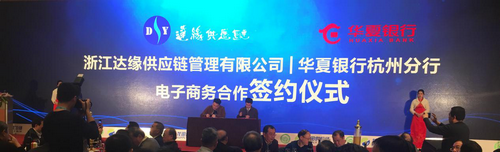 由于平台在上下游强大的号召力,以及达缘自有的供应链服务体系,使得达缘具有对于货物的全程控制(全程溯源对于货物的质量把控、自有供应链服务体系形成的供应链闭环),此模式也得到了许多银行及金融机构的关注,经过多次考察、谈判,平台与杭州联合银行、华夏银行、邮储银行达成战略合作。至此,平台整合上下游企业,引入金融机构,结合自身供应链服务优势,由平台提供寻源、采购、报关、仓储、物流、溯源等供应链服务,由银行等金融机构提供资金杠杆,为上下游企业提供一站式供应链服务。整合了一套业务+资源+技术的综合解决方案,致力于打造一个专业、高效的供应链管理服务平台,集物流、资金流、信息流于一体,打造一个全新的供应链生态圈。