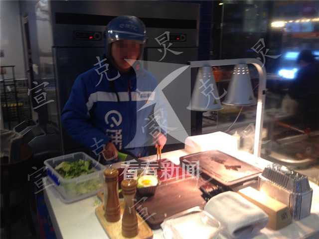 虽说如今送餐服务方便了很多白领一族,一头是嗷嗷待哺要吃饭、一头是加急送餐跑量赚钱、一头是如坐针毡的餐厅服务者。外卖送餐小哥“跨界配餐”仿佛有了存在的合理性。不过,餐饮行业的人都明白:厨帽还是要有一顶的、穿衣还是有讲究的、个人卫生是一定要确保的。一个送餐员:外套也没脱、头盔也还戴着,显然是要赶时间,这一赶时间,看客们觉得他在大显身手,对于食客来说:谁能确保其中的食品安全?市民随后向相关部门进行了举报。