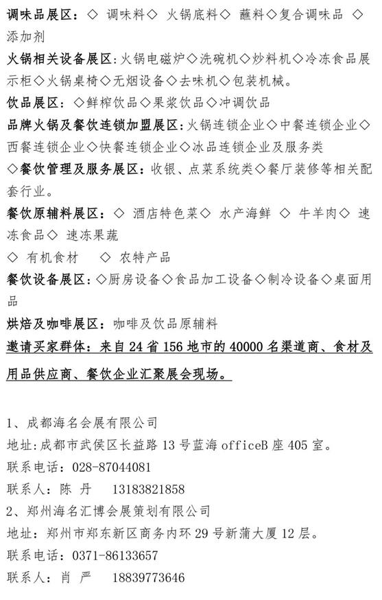 海名会展集团携手四川省火锅协会重磅出击,联合打造中国餐饮行业“糖酒会”,同期举办“四川省火锅协会成立周年庆典及火锅产业发展高峰论坛、第三届川渝火锅发展交流会、火锅品鉴会、供应链体系建设交流会、产地推介及产业链对接及各项大赛”等20多场活动!