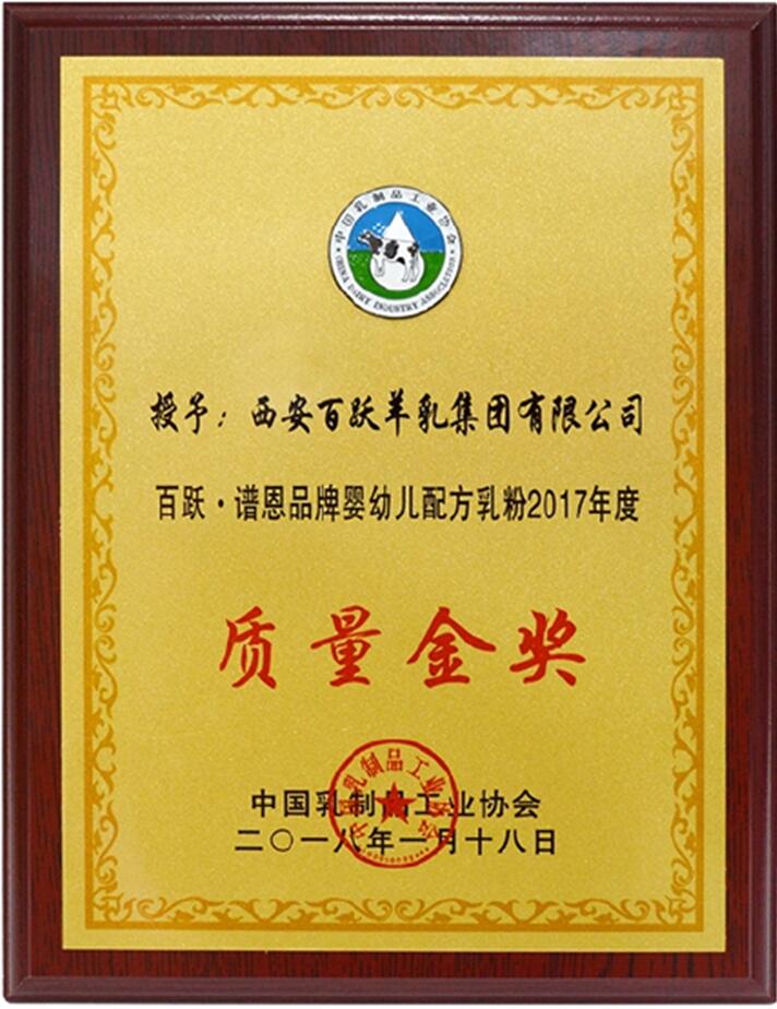 2018年1月18日,中国乳制品工业协会在北京召开了新年第一个会议——“中国乳业质量年会及中乳协第六届理事会二次会议”。会上对在2017年度婴幼儿配方乳粉主流品牌质量大赛中获得优异成绩的26家企业进行了表彰。百跃谱恩凭借严苛的标准和扎实工作作风,一举摘得“质量金奖”,以品质彰显品牌实力。