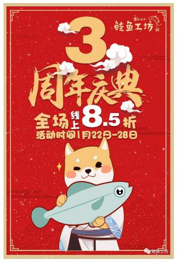 鲑鱼工坊三周年庆,顾客在永辉生活APP和超级物种门店内均可以8.5折抢购鲑鱼工坊全品类美食,为你的品质生活保驾护航。