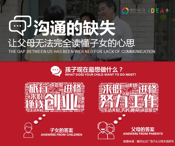 “腾讯社交广告子女父母关系研究的结果显示,其实父母比子女更渴望平等的交流。” 黎沛姿表示,6成父母希望与子女的关系是“密友”或平等交流的“朋友”,而对于父母的这一期待有所了解的子女只有30%。