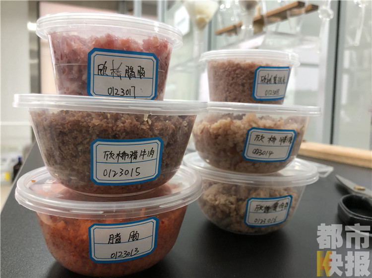 前几天,记者在市场随机选购了六种不同的腊肠、腊肉以及腊牛肉制品。随后,将它们研磨成了粉末状装进了实验盒里,颜色状态都有差异。经过48小时的等待,现在答案已经出来了。在感官检测区,记者注意到这些检测溶液颜色深浅不一,那么究竟谁合格谁不合格呢?