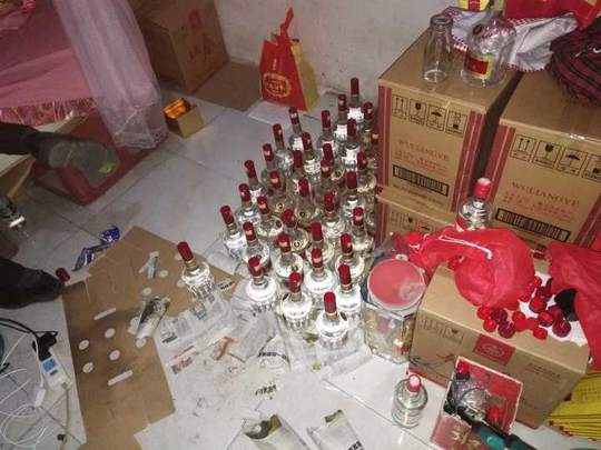 1月初,都江堰警方接到市民报警称,自己可能买到了假的五粮液。根据线索,警方立即开展摸排走访工作,经调查发现,市区内奎光西上中街某联排铺面很可能就是生产假酒的作坊。
